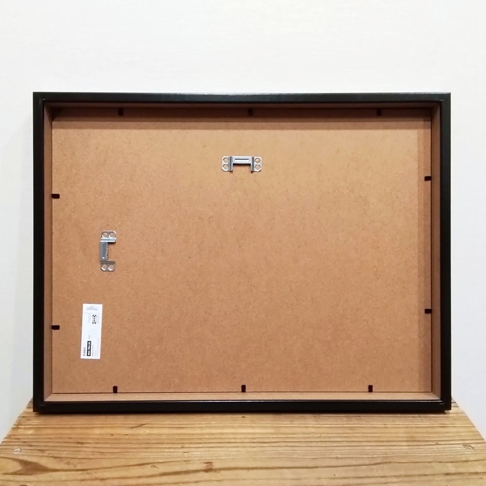 シンプルな黒い額(アクリル板無し)が合わせてあります。