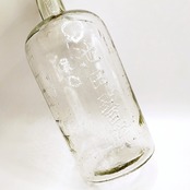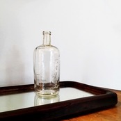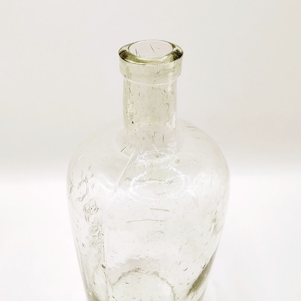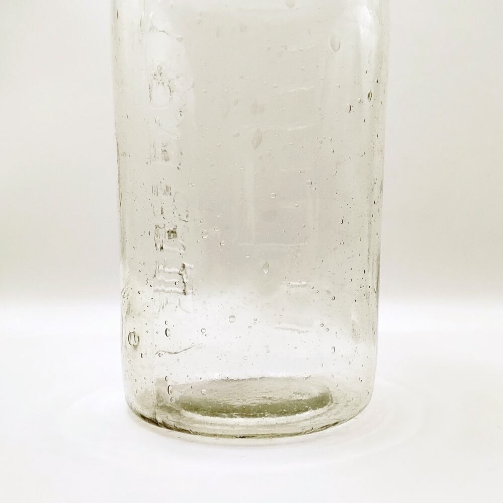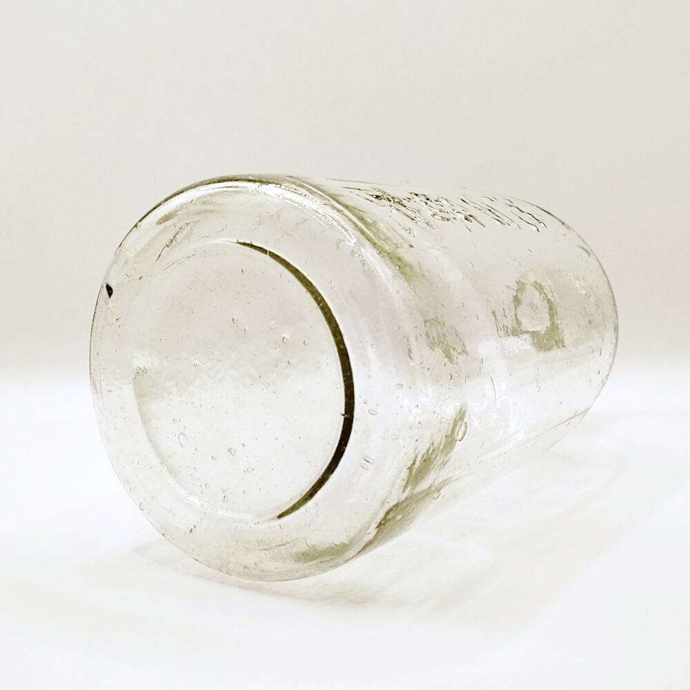 やや傾き、縁のカットも平らとは言えないいびつな佇まいに、当時のガラス製品ならではの味わいとロマンを感じます。