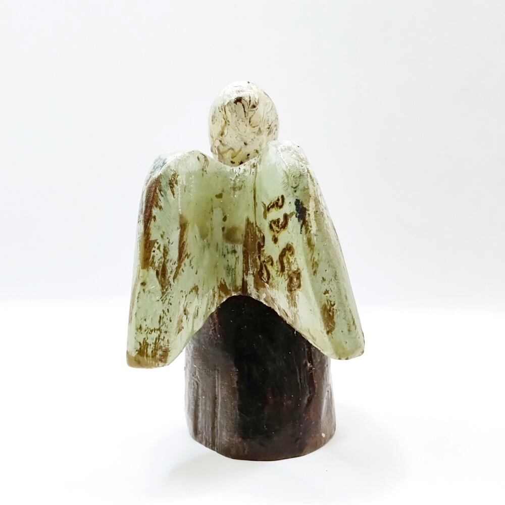 木材をクラフト染料と油性ペンキで着彩し、その上からハンダゴテで熱を入れて線刻を施すユニークな工程により、まるで長い年月を経た古物のような風合いが生まれました。