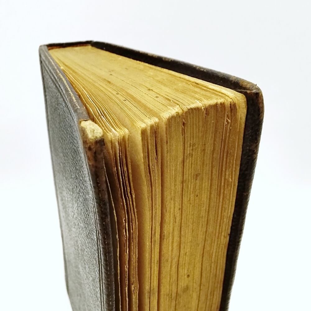 130年をゆうに超えるとても古い書籍のため、革表紙のスレや小傷、紙のシミやヤケ、当時の持ち主の書き込みなどの経年変化が育っています。