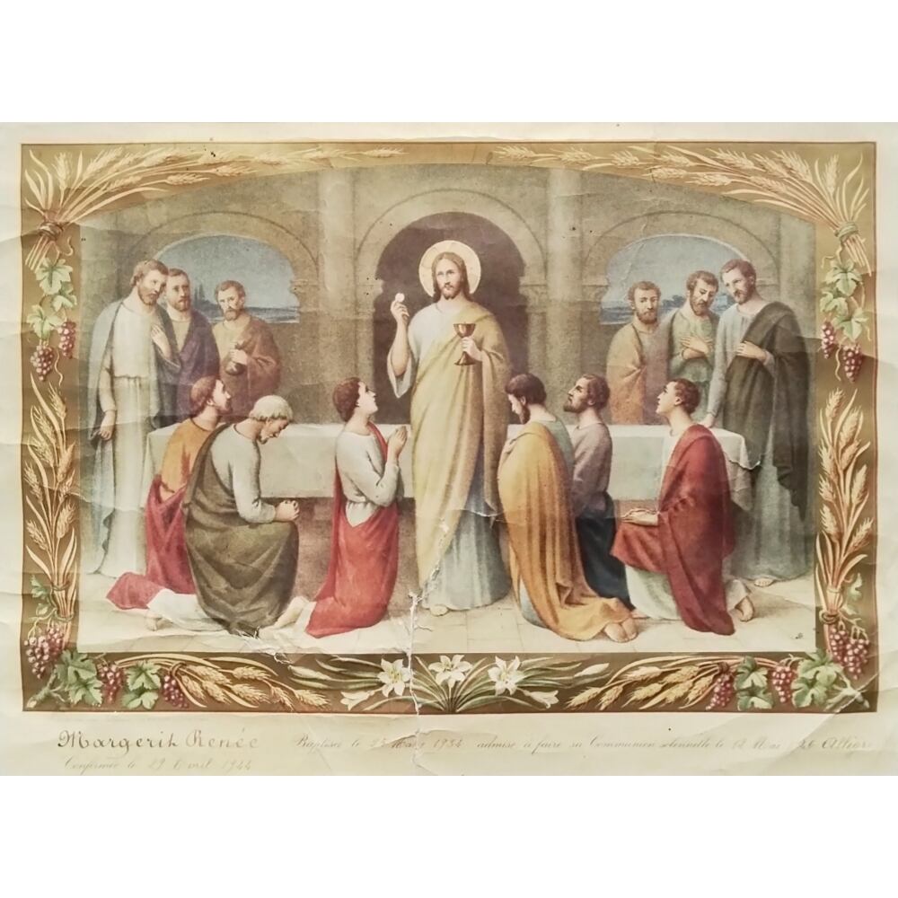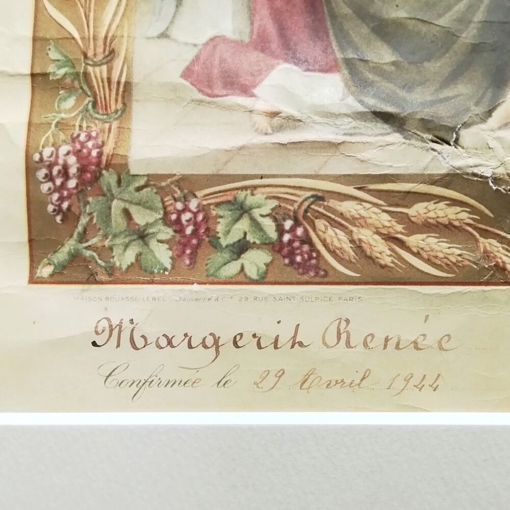 こちらは、マルグリット・ルネという人物が、1934年に洗礼を、1946年に初聖体を受けたことを証明する、フランスの古い書類です。