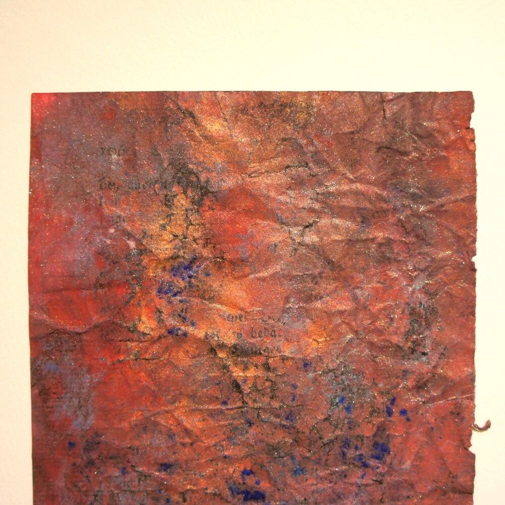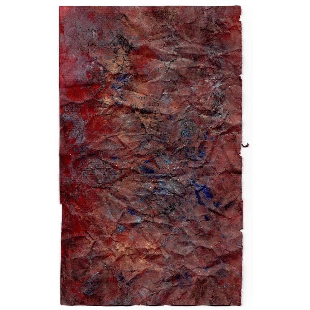幾層にも重ねられた深みのある色彩から、うっすらと古書の活字が透けています。
