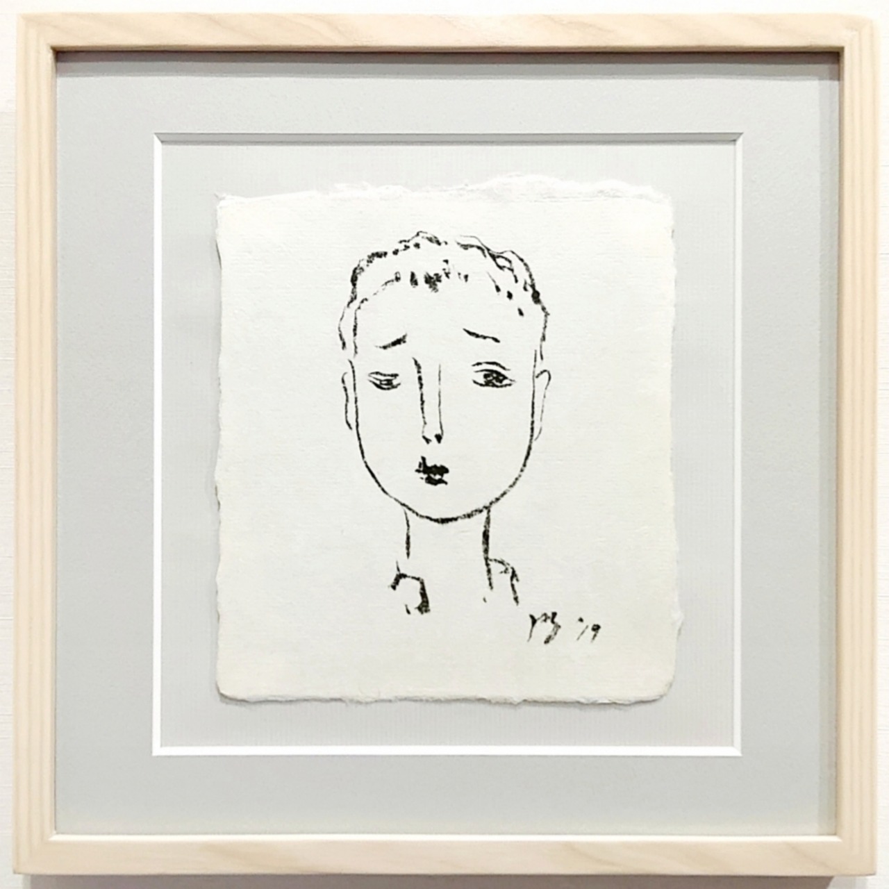 幅1.1cmのシンプルな木製額に、グレーのマットが合わせてあります。