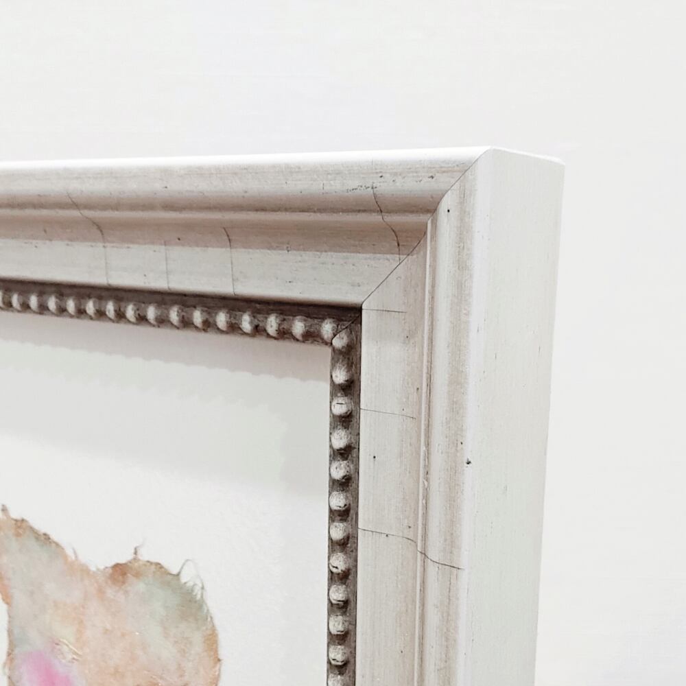 美しい粒飾りの施されたオフホワイトの額は、大きな額を作る時に残ってしまった端材を使って作られた「ミニ額」です。