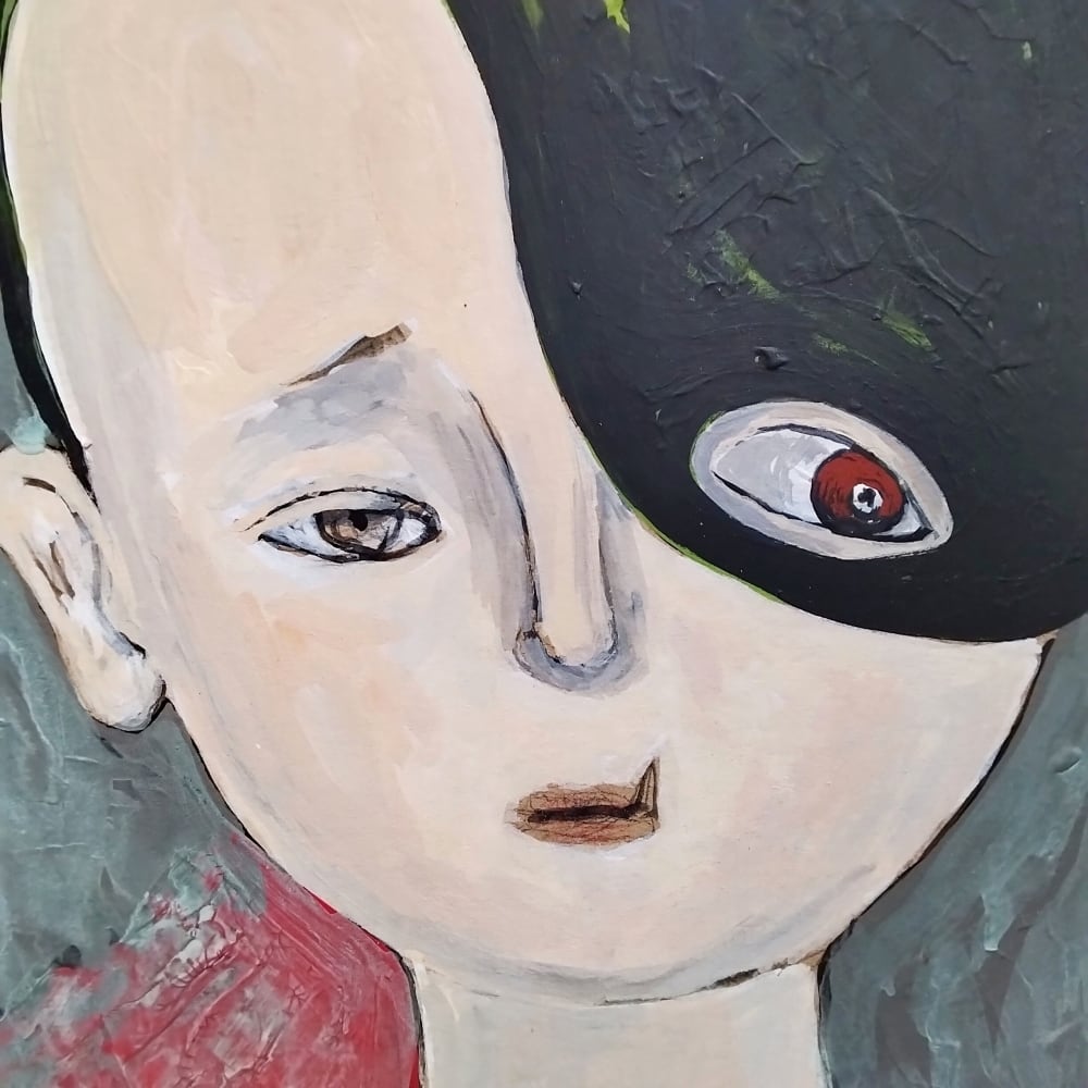 健気で愛らしい子どもに影の要素が融合した姿には、人間の内面、あるいは現実社会に共存する「光と闇」が暗示されています。